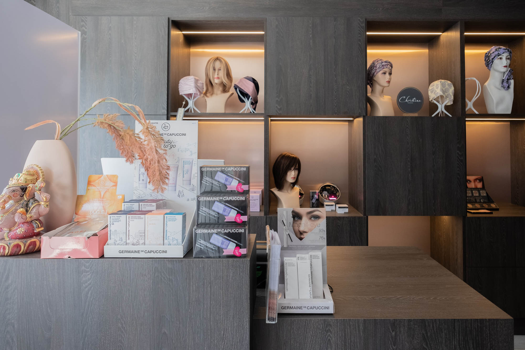 De uitdaging was groot: een extra pand openen naast een bestaande kapperszaak, met oog voor privacy, functionaliteit en een stijlvolle link tussen beide. Pruiken worden discreet tentoongesteld, terwijl je in de coffeecorner kunt ontspannen met een kopje koffie. De make-uptafel en nagelstudio bieden extra verwennerij. Achterin bevinden zich massagekamers en een pruikenatelier, waar de eigenares zich in alle rust kan focussen op de cliënt.